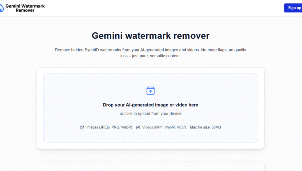 Gemini Watermark Remover cleans hidden watermarks from Gemini-generated images. It works locally on JPEG, PNG, and WebP files, keeping quality intact while protecting privacy. Simple to use, it supports single or bulk image processing, offering a quick way to prepare cleaner visuals without uploading files.